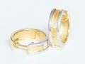 In zeer goede staat; 14 karaat bicolor gouden creolen met 0,10 crt briljant geslepen diamant.