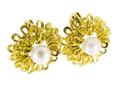 In zeer goede staat; 14 karaat geelgouden rozet oorknoppen (clips) gezet met enkele zoutwater...